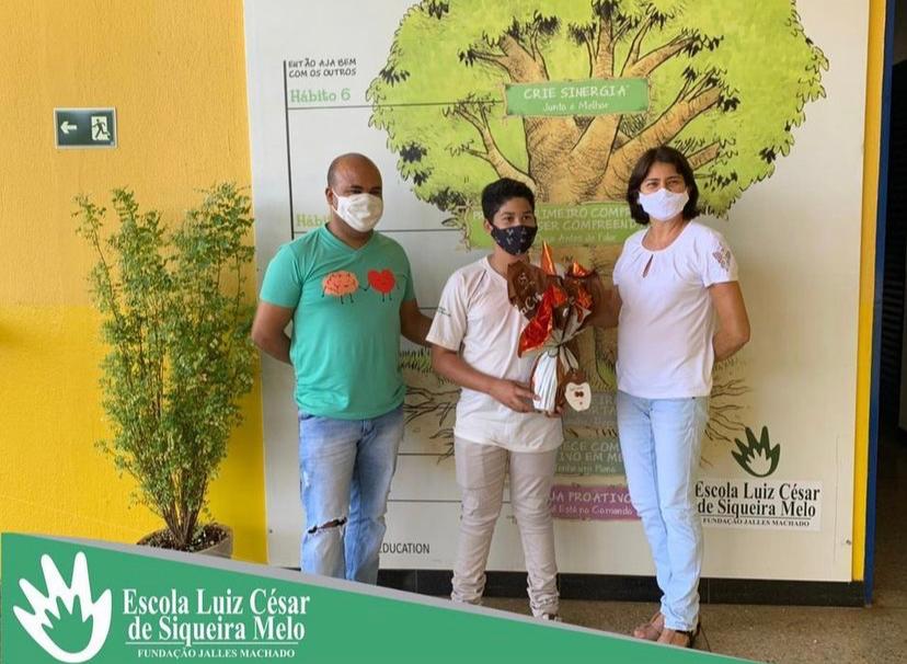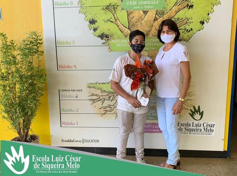 A redação do aluno André Luís Martins Lopes do 8* Ano, foi selecionada no Concurso dos 25 anos da Escola Luiz César de Siqueira Melo. A professora Rita de Cássia premiou este discente com um ovo de chocolate.