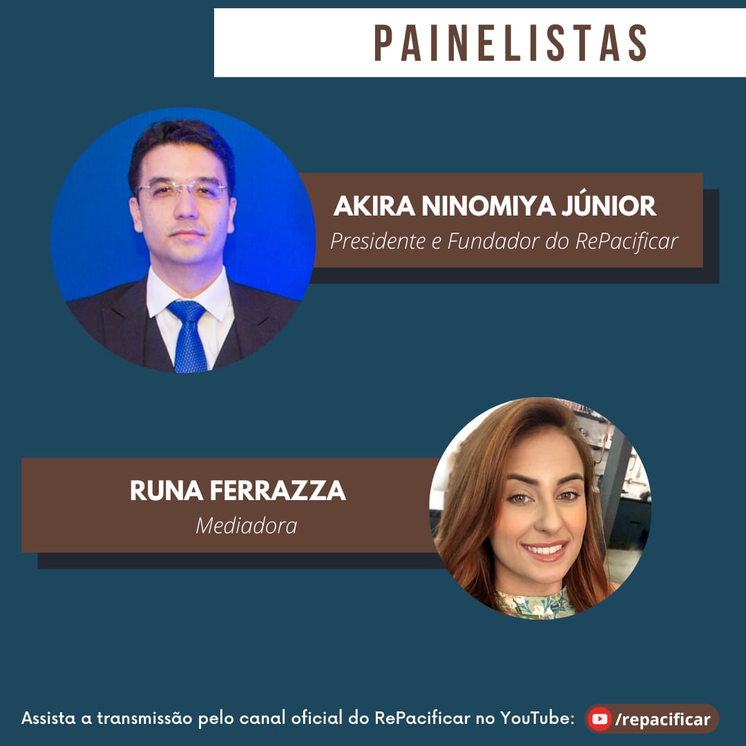 Teremos uma exposição com o fundador do RePacificar Akira Ninomiya Júnior e participação dos convidados: Fabio Velasco Fayad (Advogado e presidente do Rotary Club), Cleonice Siva (Analista do Sebrae Goiás – Gestora do Programa Educação Empreendedora) e Sirlei Ferreira Carneiro (Superintendente da Fundação Jalles Machado). O painel será mediado pela pesquisadora Runa Ferraza .