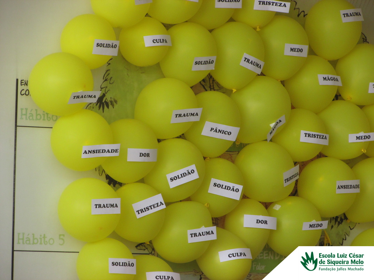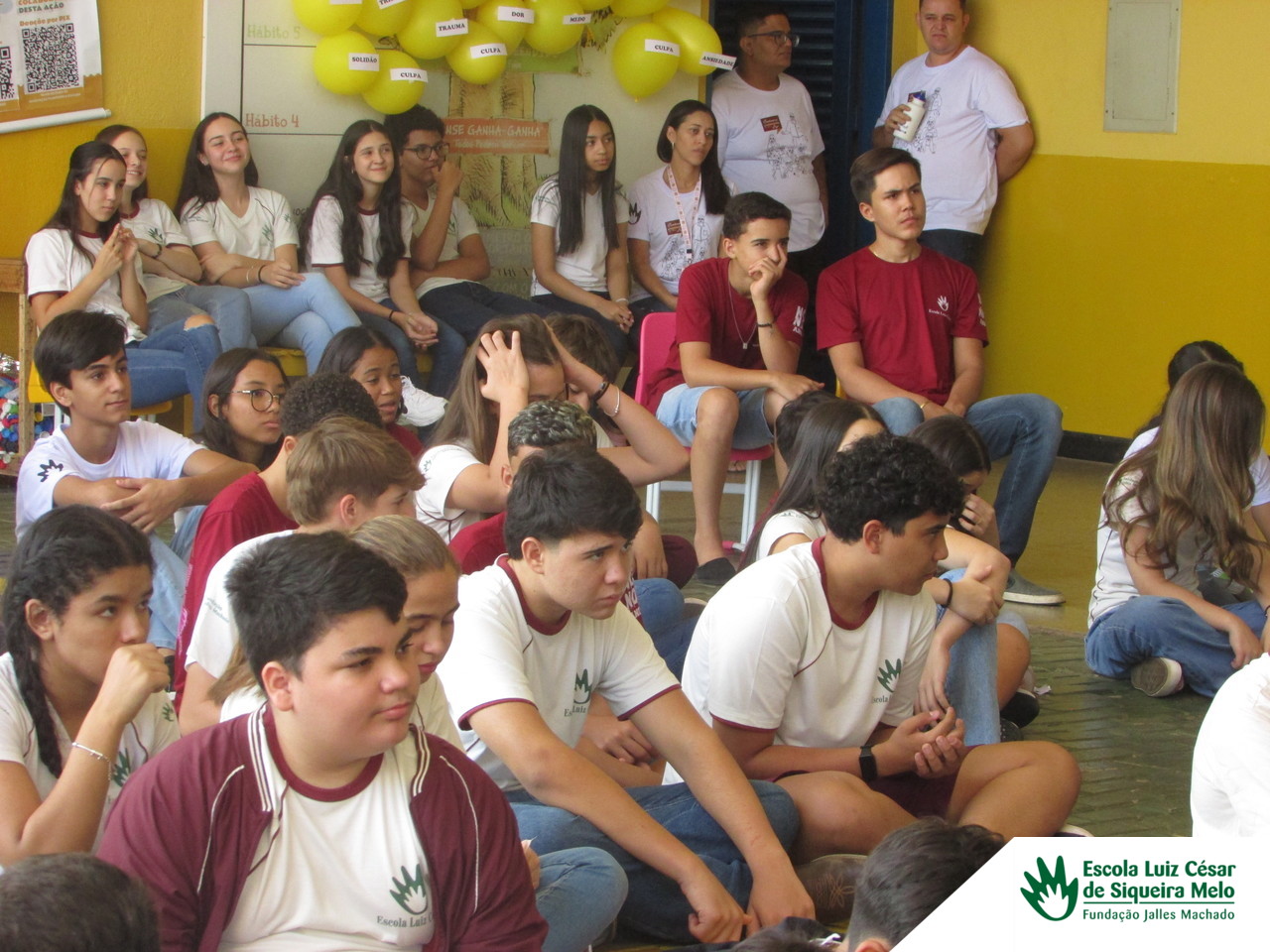 Na Escola Luiz César, realizamos palestras sobre o tema com discentes do curso de Psicologia, como o professor Pedro, a coordenadora Katiuscia Moura, Heitor Reis, Gabrielle Maria, e Larissa Lima, além da nossa gestora educacional, Sirlei Vicente Carneiro. Abordamos temas como depressão, traumas emocionais, doenças graves e bullying. Para reforçar o conteúdo das palestras, organizamos uma gincana entre os alunos, na qual estouravam balões amarelos que continham o nome de um gatilho emocional que poderia impactar a saúde mental. Dentro de cada balão, havia uma possível saída para a situação emocional apresentada.